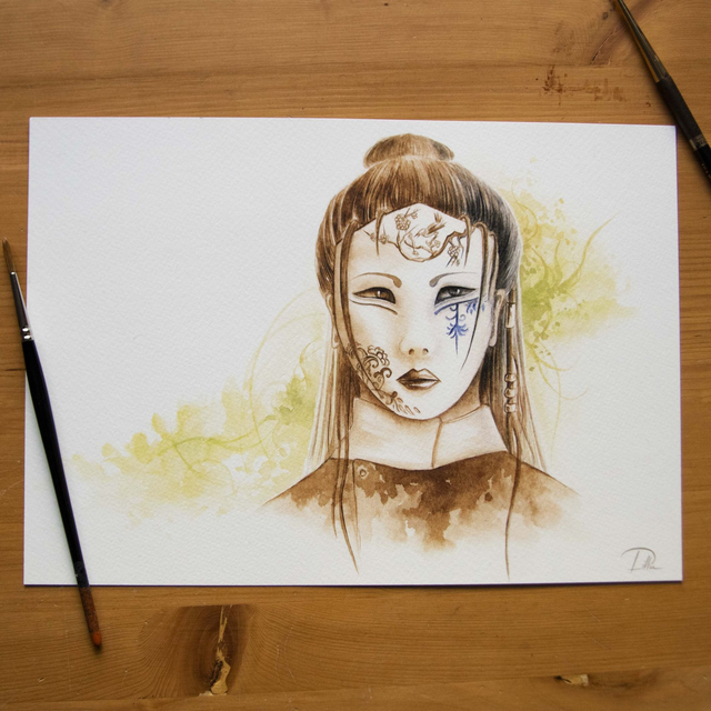 Impression réalisée à partir d'une aquarelle pour le jeu Kamicha, le jardin du thé, scannée puis imprimée à Grenoble. Papier de qualité à léger grain épais, aspect proche du papier dessin, pour rester au plus près du rendu original.