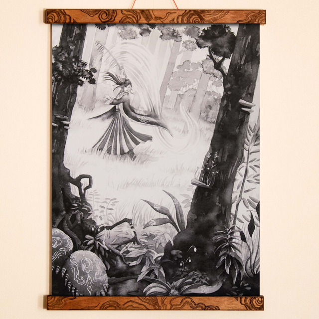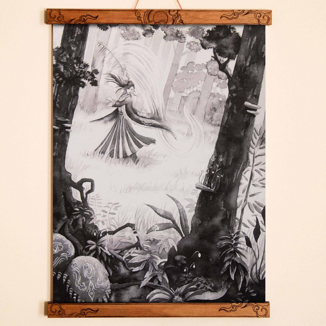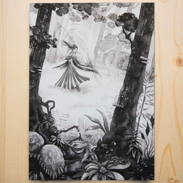 Impression réalisée à partir d'une aquarelle pour le jeu Susanoo, scannée puis imprimée à Grenoble. Papier de qualité à léger grain épais aspect proche du papier dessin, pour rester au plus près du rendu original. Disponible en A4 et A3.