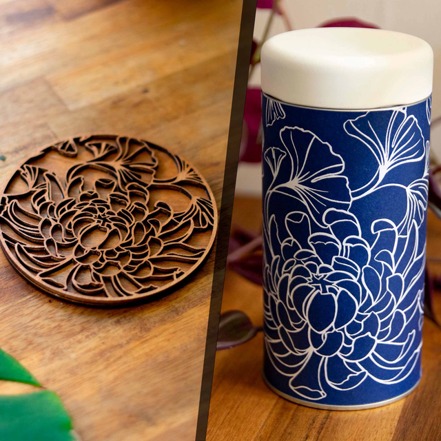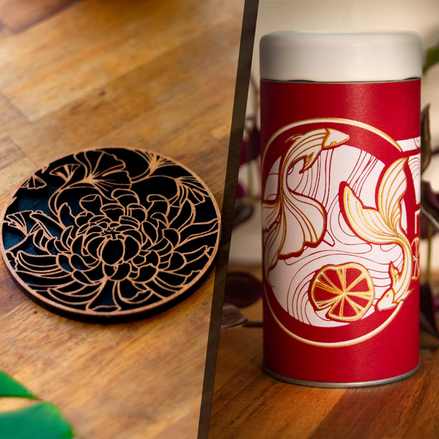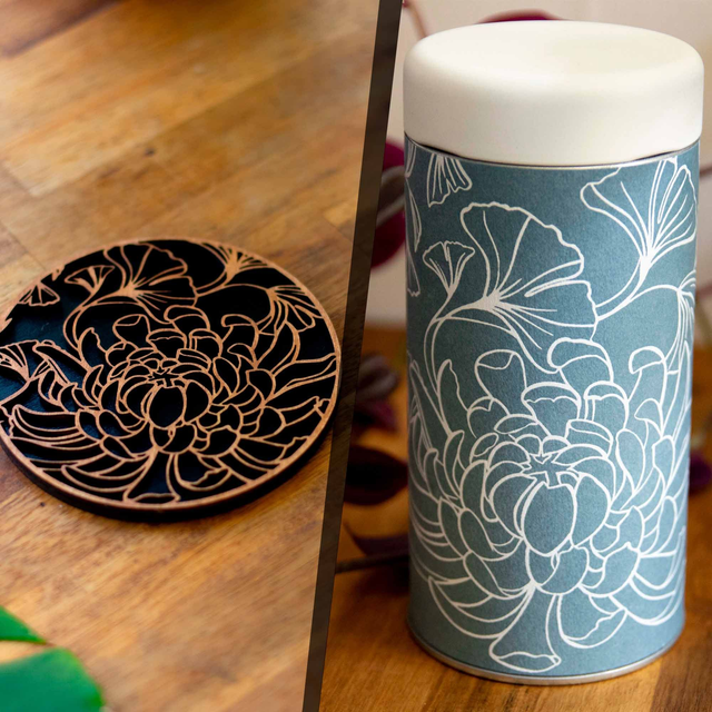 Ce coffret comprend une élégante tasse en verre aux motifs dépolis géométriques, accompagnée de sa boîte à thé ainsi que d’une sous-tasse (tous deux au choix). Les sous-tasses en bois vernis sont proposées en trois coloris : brun, noir ou blanc (cf. Selection options).