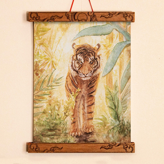 Vous pouvez également choisir l'illustration avec son cadre en bois gravé et aimanté, soit sous forme de kakémono soit sous forme de cadre complet. Pour les kakémonos : deux motifs différents (nuage ou grue) sont disponibles. Un cadre correspond à deux baguettes et leurs fonds aimantés, à placer en haut et en bas de l'illustration. Il suffit simplement de placer l'illustration entre les aimants de chaque baguette.