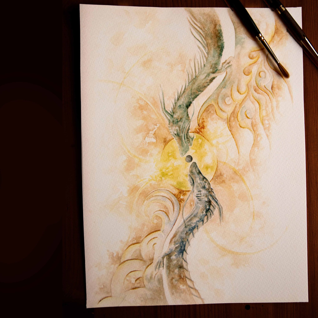 Dragon d'air et d'eau - Ajout de dorures - Format A4